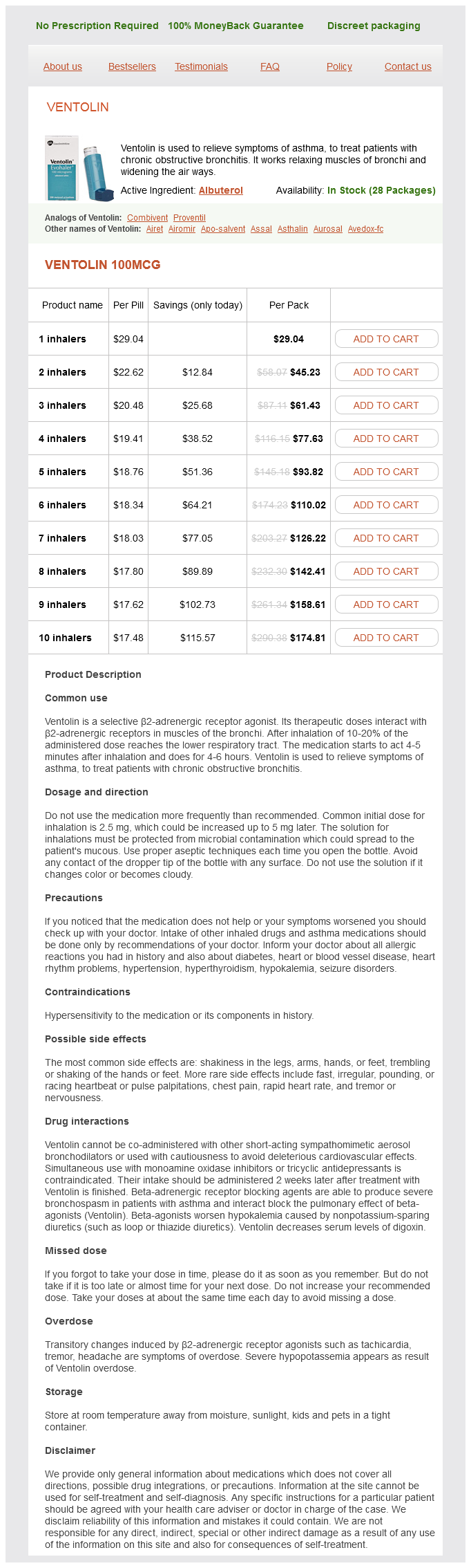 Albuterol Dosage and Price